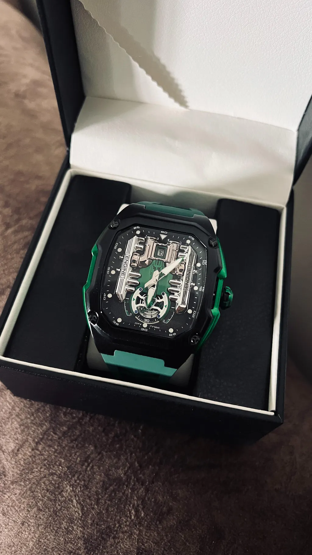 As a car guy, I’m obsessed. The dial legit looks like a mini V12 block. My new favorite watch 🔥